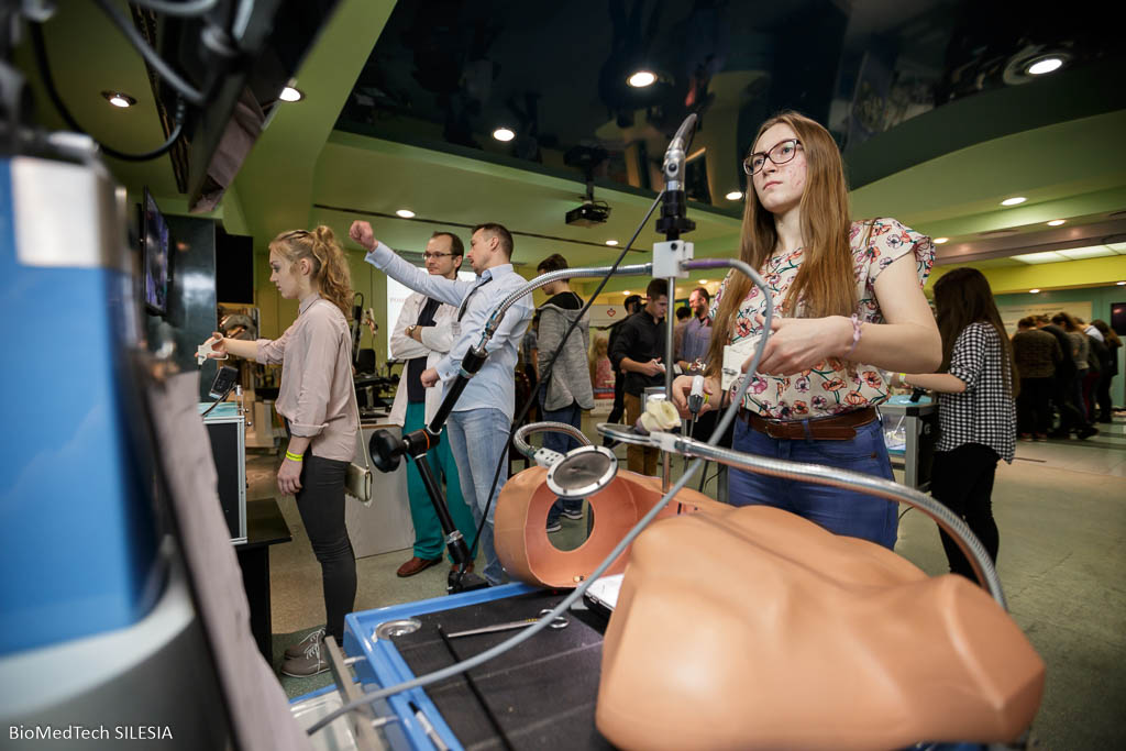 Uczestnicy mogli poćwiczyć szycie na skrzydełku kurczaka, poznać z bliska polskiego robota Robin Heart, jak również przekonać się jak bardzo dobór narzędzi – od klasycznych, przez laparoskopowe, do robota chirurgicznego – zmienia możliwości operowania.
